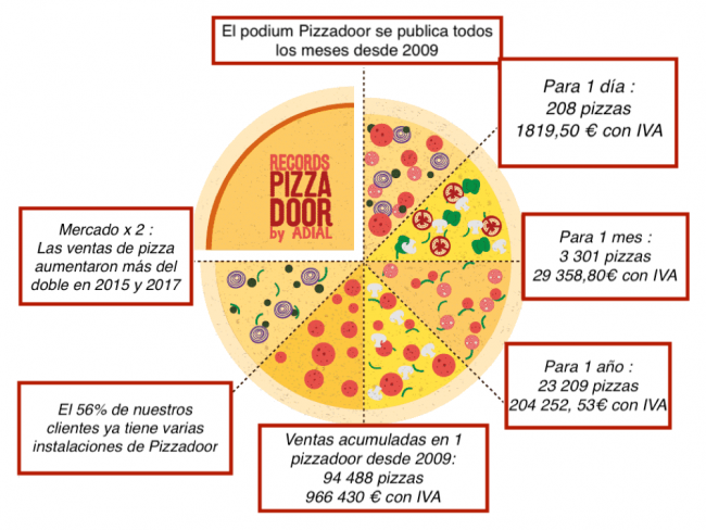 Desde su creación en en Francia en 2002, Pizzadoor ha revolucionado el mercado de la venta de pizzas para llevar. En 2013, pasamos la barra de las 130 máquinas vendidas y en los 5 últimos años se aceleraban las ventas con mas de 500 máquinas… superando las 600 implantaciones en el mundo este mes de…